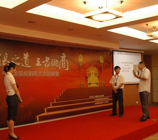 2010年7月20日,北京國富縱橫國際•AST商學院與中國家具銷售商專業委員會共同舉辦“中國家具經銷商成長之道——王者論商”北京訓練營,這是國富縱橫第95屆大型專業訓練營,也是家具行業首次針對家具經銷商的專業提升,開啟了2010年中國家具行業流通業的新篇章。參加此次訓練營的近百位學員,分別來自百強家具、城市之窗、華日家具、華鶴家具、可愛多兒童家具、光明家具、青島一木、歐馬家具等眾多家具品牌經銷商及營銷總監、區域經理;并且還聚集了極具區域代表性的東營光明家居廣場、石家莊創典居、山西御景家居品牌中心、鄭州高盛家居、盛家家居(中國)連鎖機構等眾多企業,這是家具行業流通業的一次盛會。