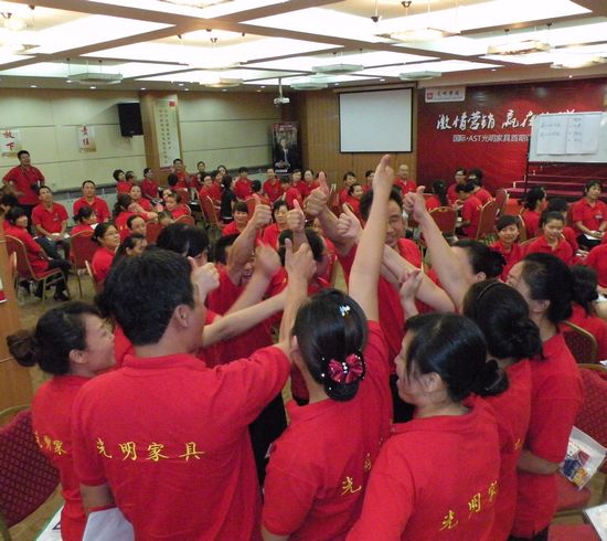 2010年9月16日2010年光明集團(tuán)股份有限公司激情營銷 贏在終端國際•AST專業(yè)百零三屆暨光明家具首期訓(xùn)練營在北京北農(nóng)酒店完美落幕!來自光明家具全國分公司的店長、導(dǎo)購共170多名學(xué)員參加了此次訓(xùn)練營。光明集團(tuán)股份有限公司董事長張金鑄先生在訓(xùn)練營動(dòng)員會(huì)上面講到,集團(tuán)要發(fā)展,一定要靠學(xué)習(xí),學(xué)習(xí)一定要找專業(yè)的家具培訓(xùn)公司。這次學(xué)員們一定要在這次的培訓(xùn)大會(huì)上面學(xué)到知識(shí),運(yùn)用到家具銷售和店面管理當(dāng)中去。并對北京國富縱橫管理咨詢有限公司給予了極高的評價(jià)。光明集團(tuán)電子商務(wù)副總經(jīng)理王淑娟女士在開班典禮上面講到,我們光明人要做到光明家具團(tuán)結(jié)一致、光明集團(tuán)永爭專業(yè),學(xué)習(xí)要有學(xué)習(xí)的態(tài)度,如果光明拒絕學(xué)習(xí),那么光明的競爭對手永遠(yuǎn)不會(huì)。