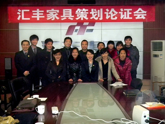 2011年1月7日,國富縱橫總裁趙龍、執(zhí)行總監(jiān)、設計總監(jiān)等一行6人奔赴唐山,與匯豐家具高層召開了項目論證會,為企業(yè)指點迷經,送去打開匯豐振興之門的金鑰匙。