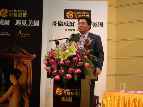 3月15日,廣東省商標(biāo)GAINWELL哥倫威爾強(qiáng)勢(shì)推出古典小美式系列——亞美利加,在業(yè)內(nèi)驚起來一片震動(dòng)。在廣東中山舉行的2010哥倫威爾新品發(fā)布會(huì)上,美盈實(shí)業(yè)總裁黎偉良和銷售總監(jiān)葉文超對(duì)哥倫威爾品牌和新產(chǎn)品做了詳細(xì)闡述,北京國富縱橫咨詢公司總裁趙龍博士、簡(jiǎn)愛家居總裁羅輯莉、中國品牌營(yíng)銷學(xué)會(huì)秘書長(zhǎng)李易洲等嘉賓出席祝賀,近兩百名經(jīng)銷商和十幾家媒體參加本次活動(dòng),現(xiàn)場(chǎng)簽約經(jīng)銷商達(dá)五十多家,一炮而紅。