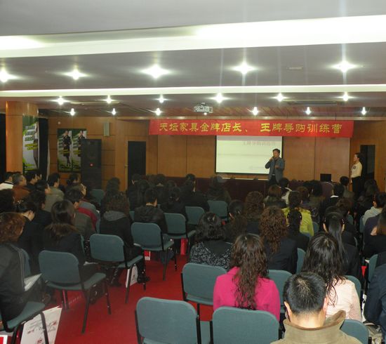 2010年3月29日,天壇家具“金牌店長 王牌導購” 國際•AST第77屆訓練營在北京金隅集團黨校完美落幕,參加此次訓練營的學員全部來自天壇家具,其中包括天壇家具市場營銷人員、優秀經銷商、金牌店長、王牌導購員共100多人。此次培訓是天壇家具有限公司成立55年來專業次舉辦大規模的全國經銷商、店長導購員的培訓,也是國富縱橫國際•AST商學院首次與天壇家具的合作。國富縱橫國際•AST商學院為了做好此次培訓,公司總裁趙龍博士帶領導師及教練們,針對天壇家具銷售中面臨的問題,進行了深入細致的調查研究。做到有針對性的,有實效性的課程體系。